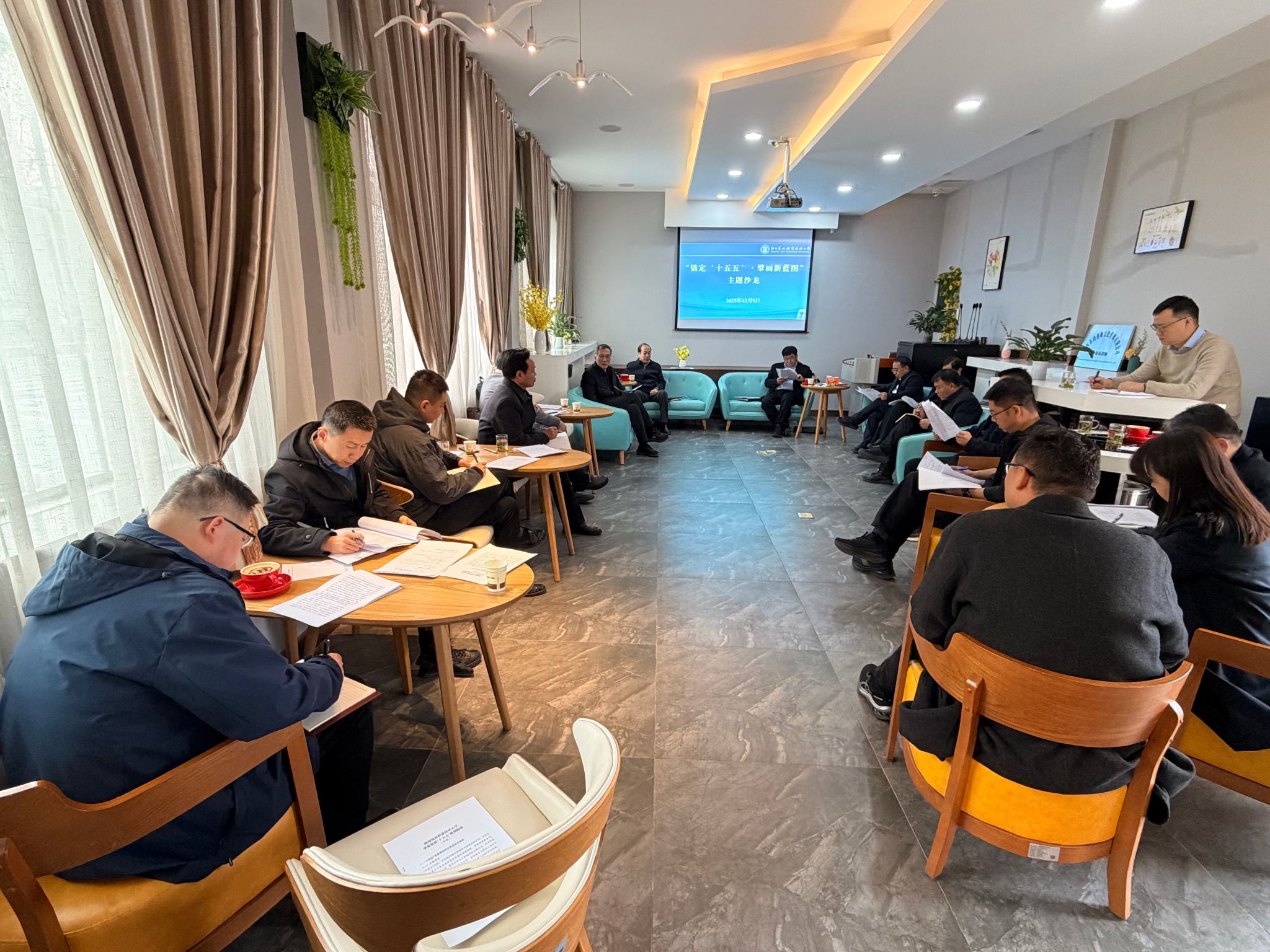 12月9日下午,我校首期“赋能高质量发展”系列学术沙龙在旅游与管理学院创咖实训基地举办。本期沙龙以“锚定‘十五五’・擘画新蓝图”为主题,围绕学校“十五五”规划编制中的关键议题展开深入研讨与思想碰撞。校领导,发展规划处及各专项规划牵头部门负责人参加活动。